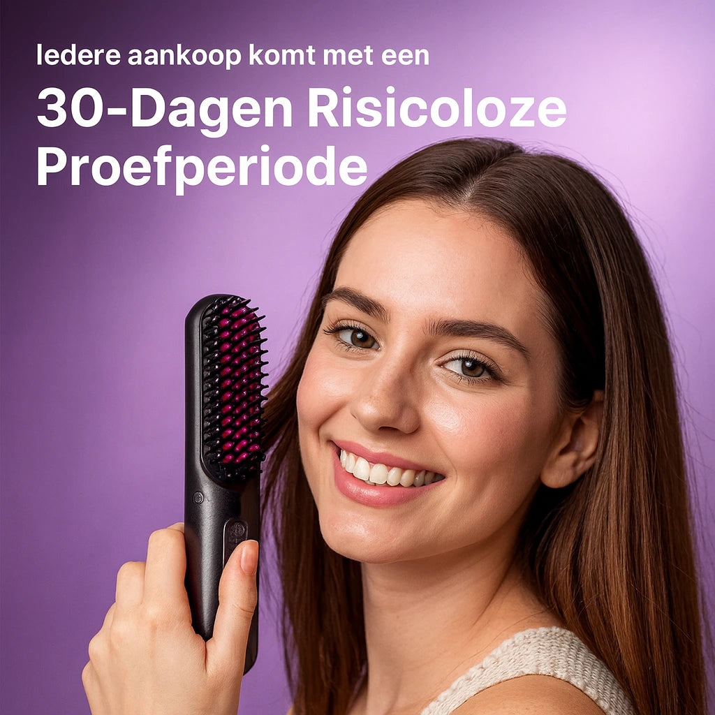 Ervaar de Elure™ Brush Pro met vertrouwen! Geniet van een proefperiode van 30 dagen om het verschil in uw haar te zien. Als u niet tevreden bent, kunt u het product gewoon retourneren voor een volledige terugbetaling. Ontdek vandaag nog moeiteloos stylen en resultaten van salonkwaliteit!
